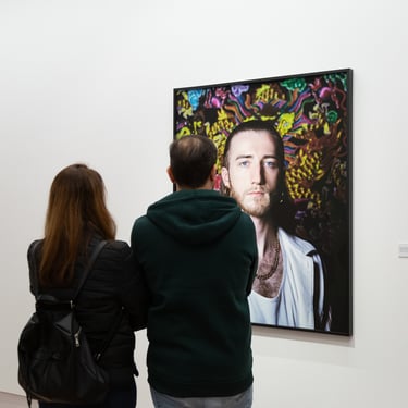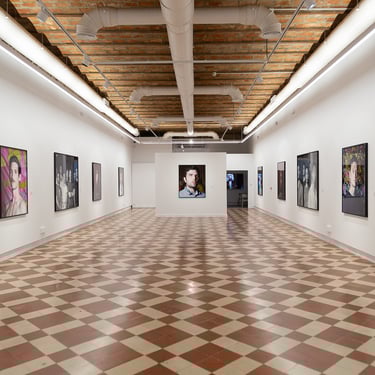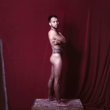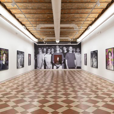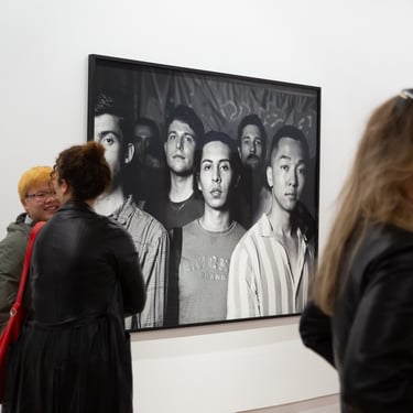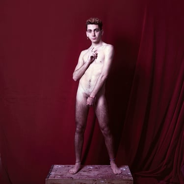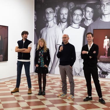 A través de las dos series fotográficas reunidas en la muestra – Torremolinos (2018) y Washington Store (2023)– reflexiona en torno a las tendencias sexo-afectivas entre jóvenes gay online, moldeadas por intereses capitalistas y económicos, y sus consecuencias en la construcción identitaria. El creador parte del uso de Grindr para localizar a los usuarios que quieren participar en el proyecto y retratarles en las ciudades que dan título a las series. Se trata de encuentros profesionales breves, pero íntimos, que condensan toda su fuerza y potencialidad en una sola imagen. La magnífica galería de rostros y cuerpos masculinos, individuales y colectivos, da cuenta del trabajo más propio y característico de Madriñán: los retratos honestos, contundentes, profundos, cargados de una naturalidad sosegada que solo es posible mediante el refinamiento técnico y el dominio de la cámara de gran formato. La muestra invita al espectador a desarrollar una mirada contemplativa que ahonde estéticamente en la personalidad de los fotografiados, pero también una perspectiva crítica, a través del cuestionamiento de un fenómeno poco analizado: el impacto de las aplicaciones de citas en la conformación de la identidad, el bienestar psicoemocional y las relaciones intersubjetivas a día de hoy.